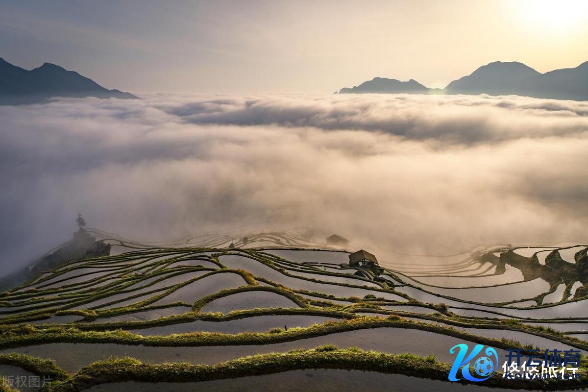 云和梯田好似地面指纹,是华东地区最大梯田群,日出时云海翻涌,冬春灌水,夏秋是漫天盖地稻田。