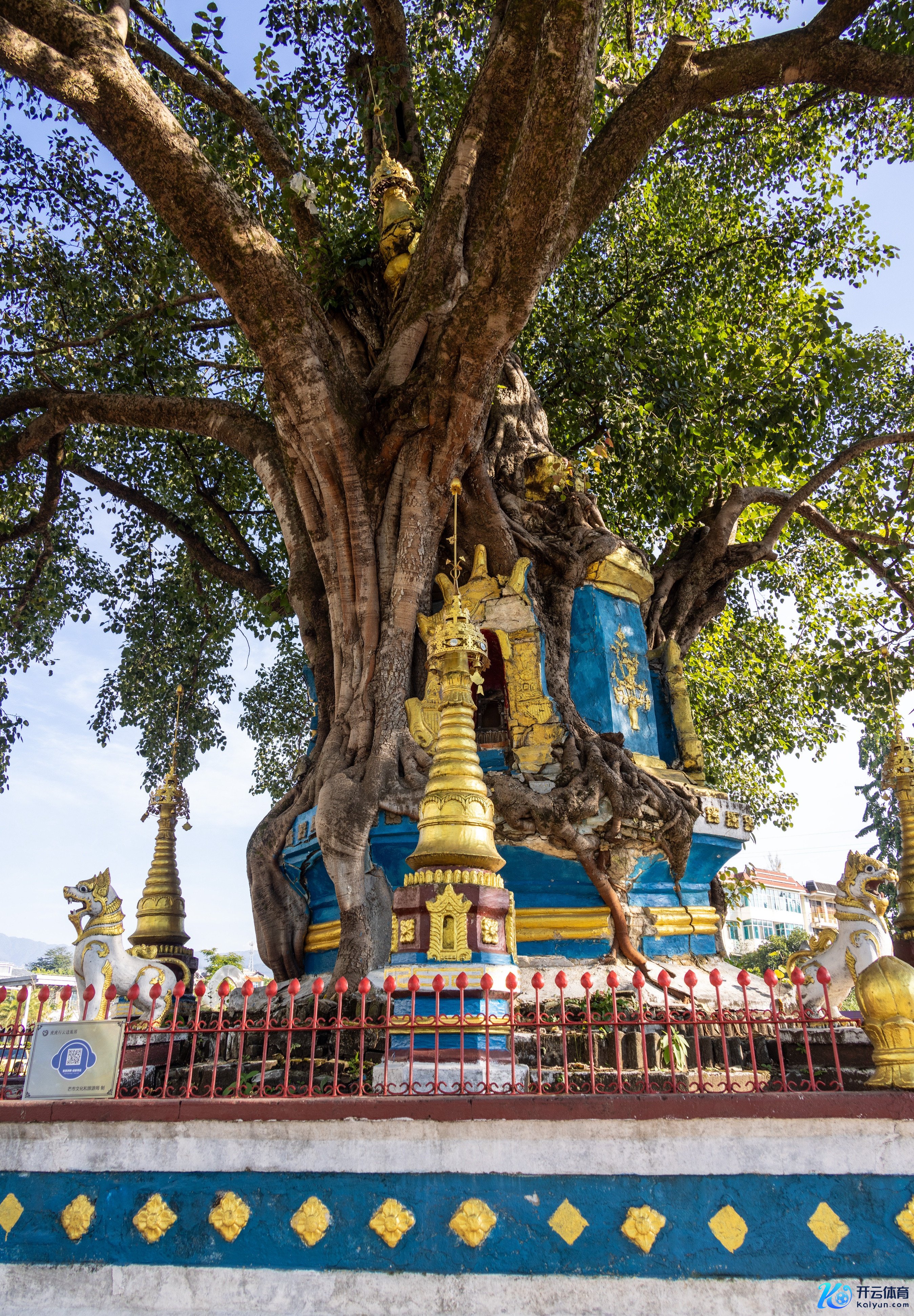 比如树包塔,厚爱称号是“铁城佛塔”。蓝本是始建于清康熙年间的佛塔,由主体和4座小塔构成。现主体已被树根包裹掩饰,体式难辨。传说塔建成后,有菩提树种籽落入塔中,后长成参天大树,酿成树包塔的奇景。