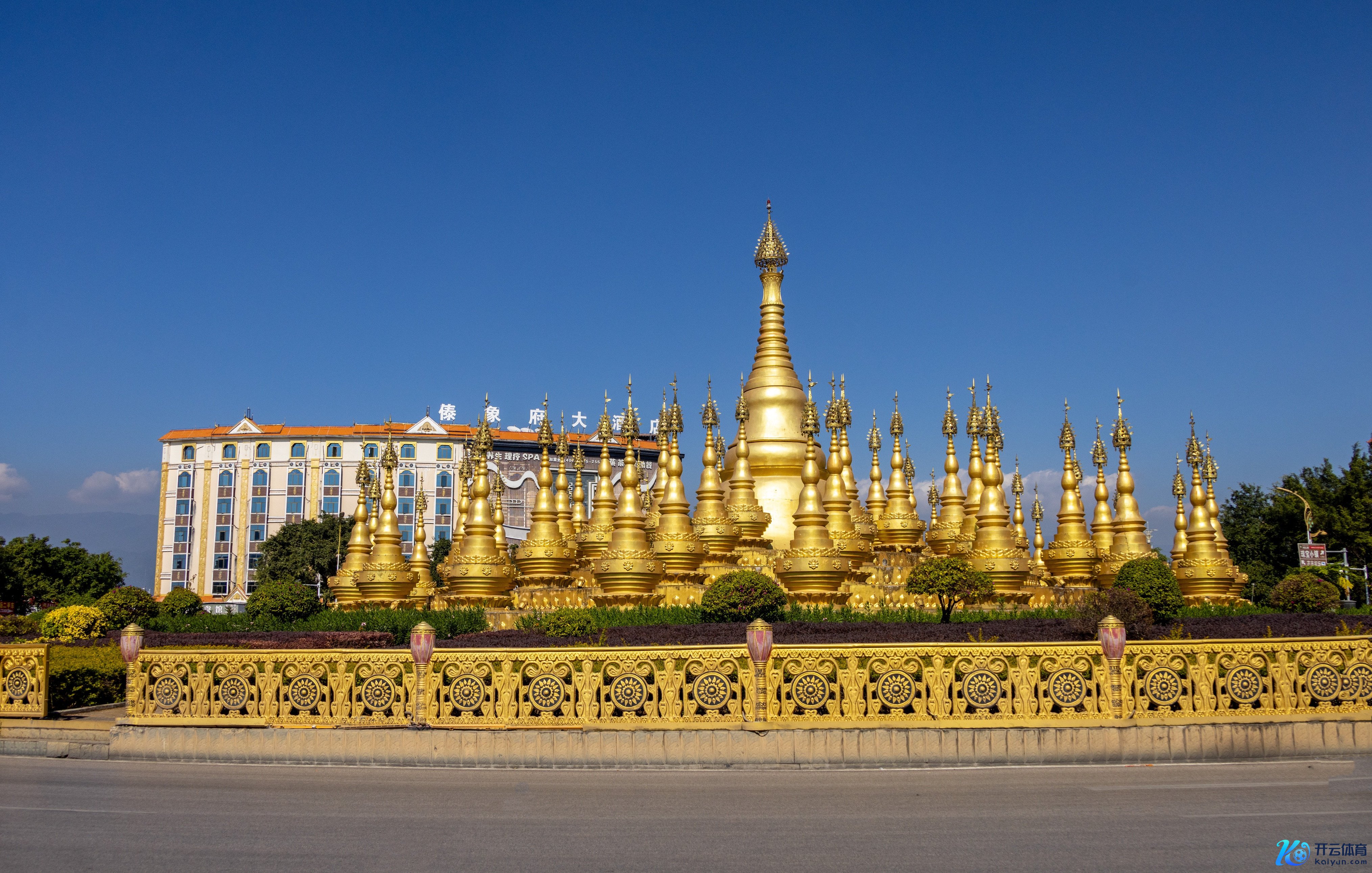 咱们进城时际遇一个漂亮的金塔群,在路边泊车拍了张像片,其后才知说念是芒市小金塔。