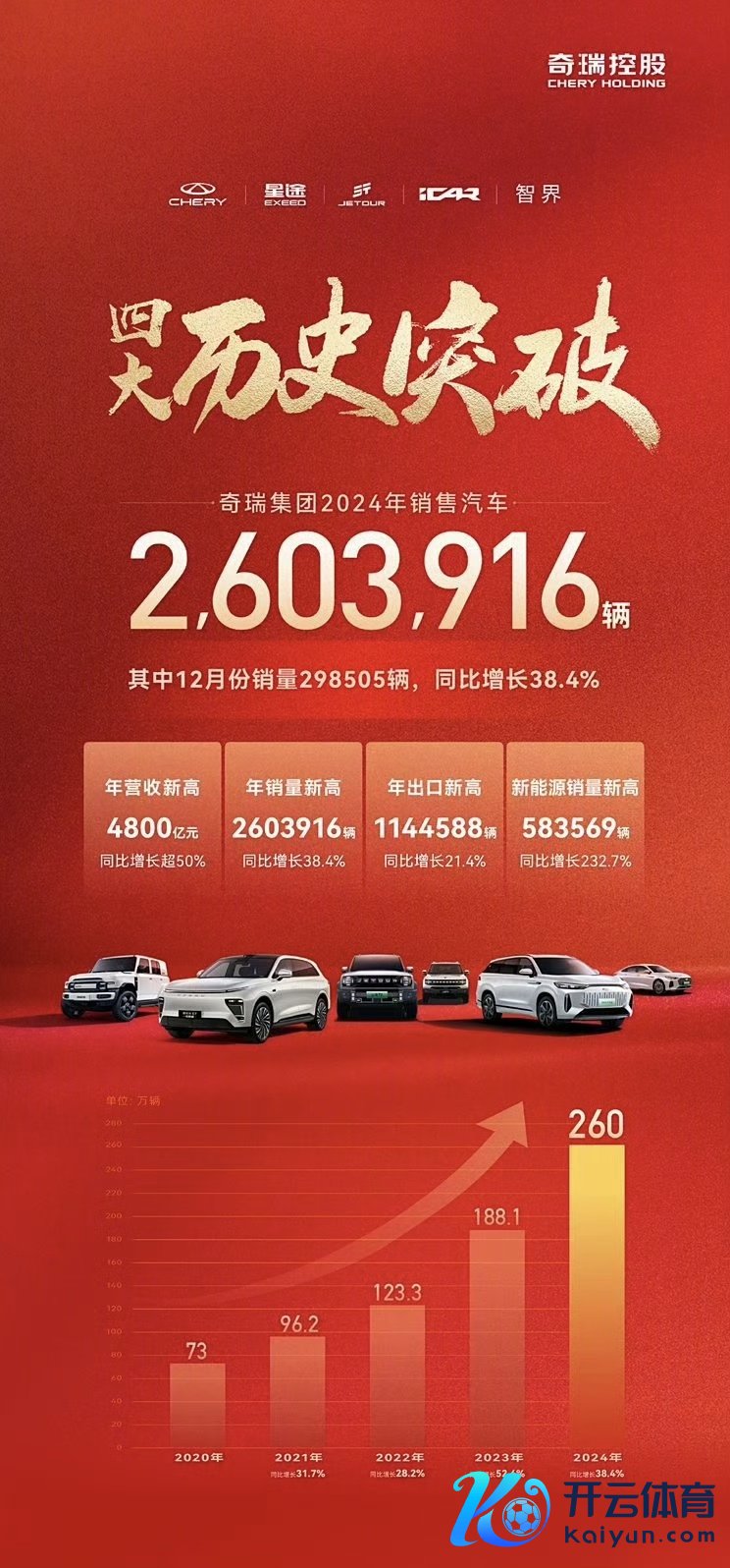 奇瑞集团12月份销量为298505辆,其中捷途66020辆和智界品牌57956辆销量增速较猛。