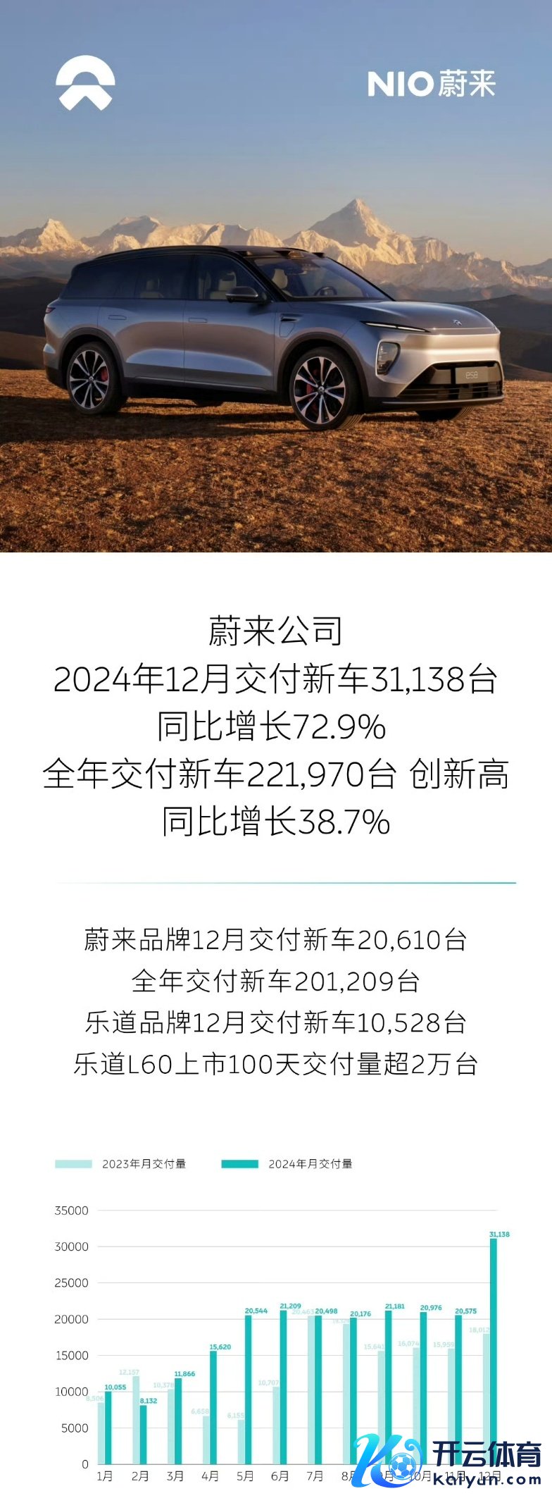 蔚来12月份请托31138辆,其中蔚来品牌20610辆,乐说念10528辆,蔚来终于雄起了一把,来岁如果乐说念L60沉稳在2万请托,蔚来也2万请托,那蔚来单月销量将破4万,短时辰没问题了,然而不要指望来岁的ET9和萤火虫能帮什么忙。