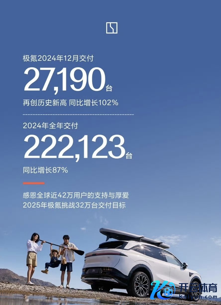 极氪12月份请托27190辆,2024年累计请托222123辆,取得这么的收获除了极氪001的沉稳销量外,本年新上的极氪7X在上市75天内请托高出3万辆,