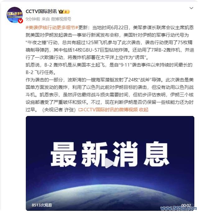 当地时代 6 月 22 日,好意思军咨询长联席会议主席凯恩就好意思国对伊朗发起紧迫一事举行新闻发布会称,好意思国针对伊朗的军事举止代号为"午夜之锤"举止,所有这个词有向上 125 架飞机参与了这次紧迫,紧迫举止使用了 75 枚精准制导弹药,其中包括 14 枚 GBU-57 巨型钻地炸弹。还动用了 7 架 B-2 轰炸机,并进行了一次欺诈举止,将轰炸机部署在太平洋上空手脚"钓饵"。