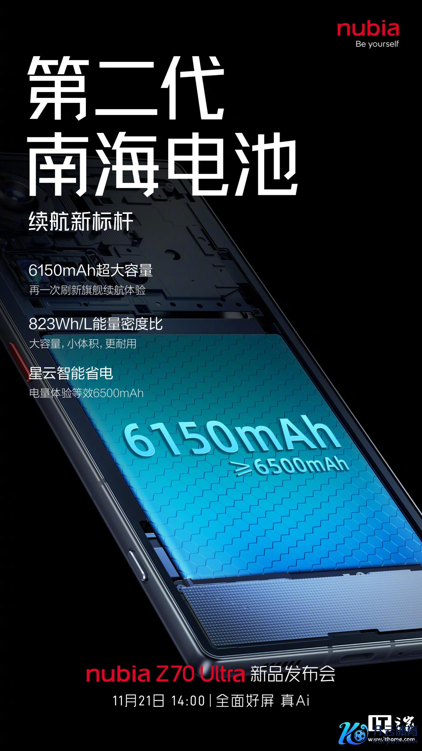 IT之家 11 月 20 日音书开云(中国)kaiyun网页版登录入口,努比亚 Z70 Ultra 手机将于明日(11 月 21 日)14:00 发布,官方当天公布了新机的电板建树信息: