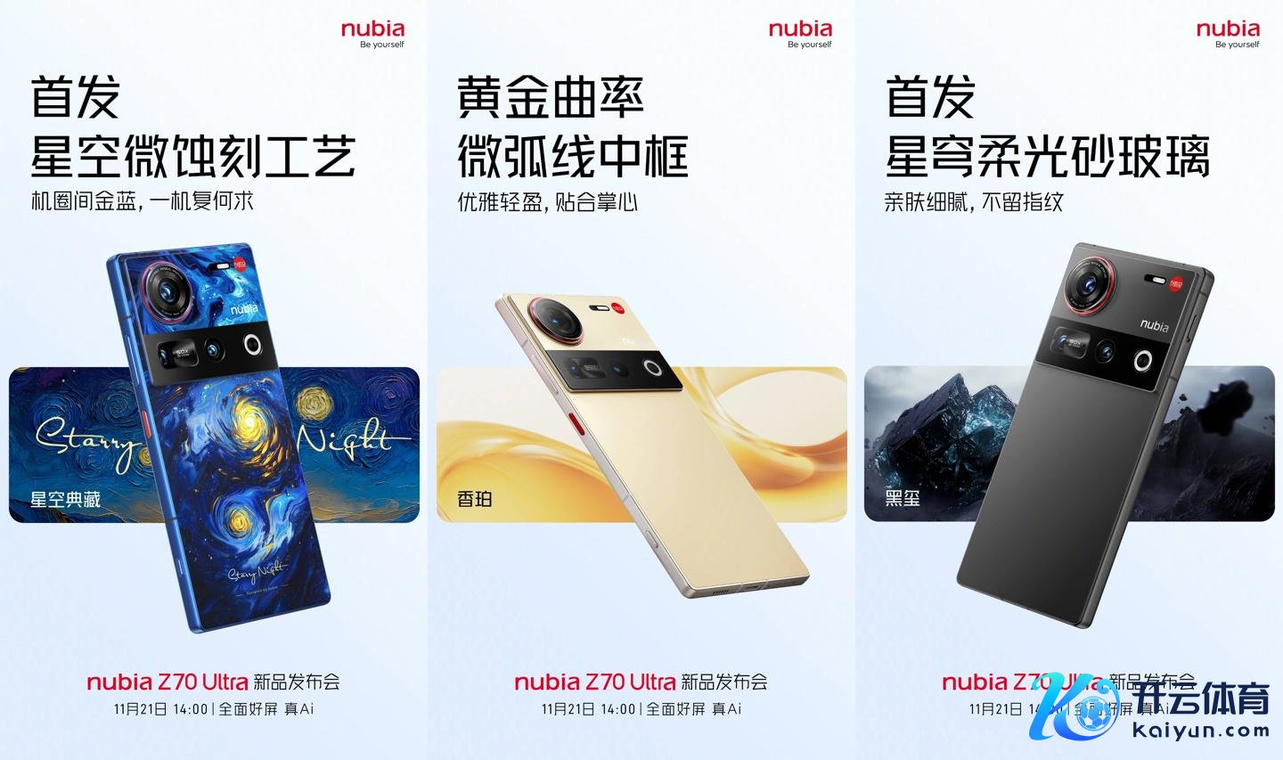 努比亚 Z70 Ultra 手机外不雅依然公布,提供“黑玺”“香珀”“星空典藏版”三款配色。