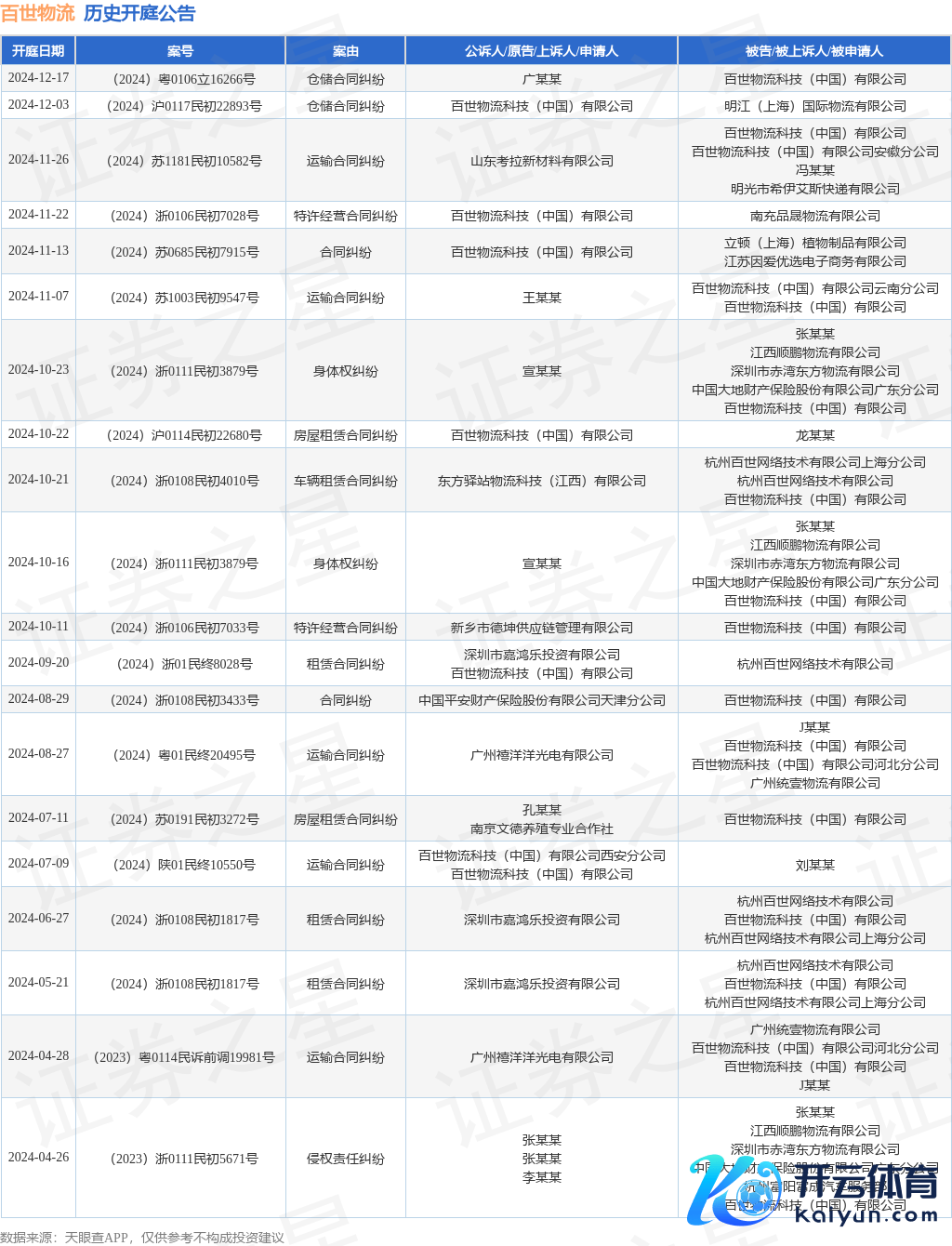 本站音问开云(中国)kaiyun网页版登录入口,阐明天眼查APP表露,近日公布了一则百世物流科技(中国)有限公司当作被告/被上诉东谈主的开庭公告,预防践诺如下: