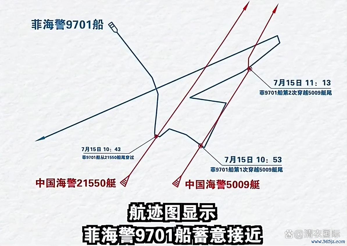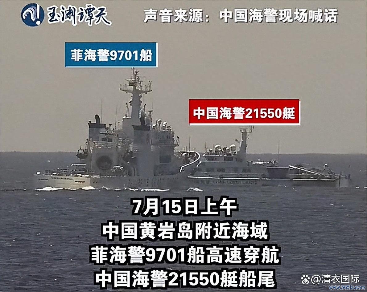 就在7月15日这个粗莽的日子,菲律宾海警9701船在黄岩岛隔邻,献技了一场"危急接近秀"。