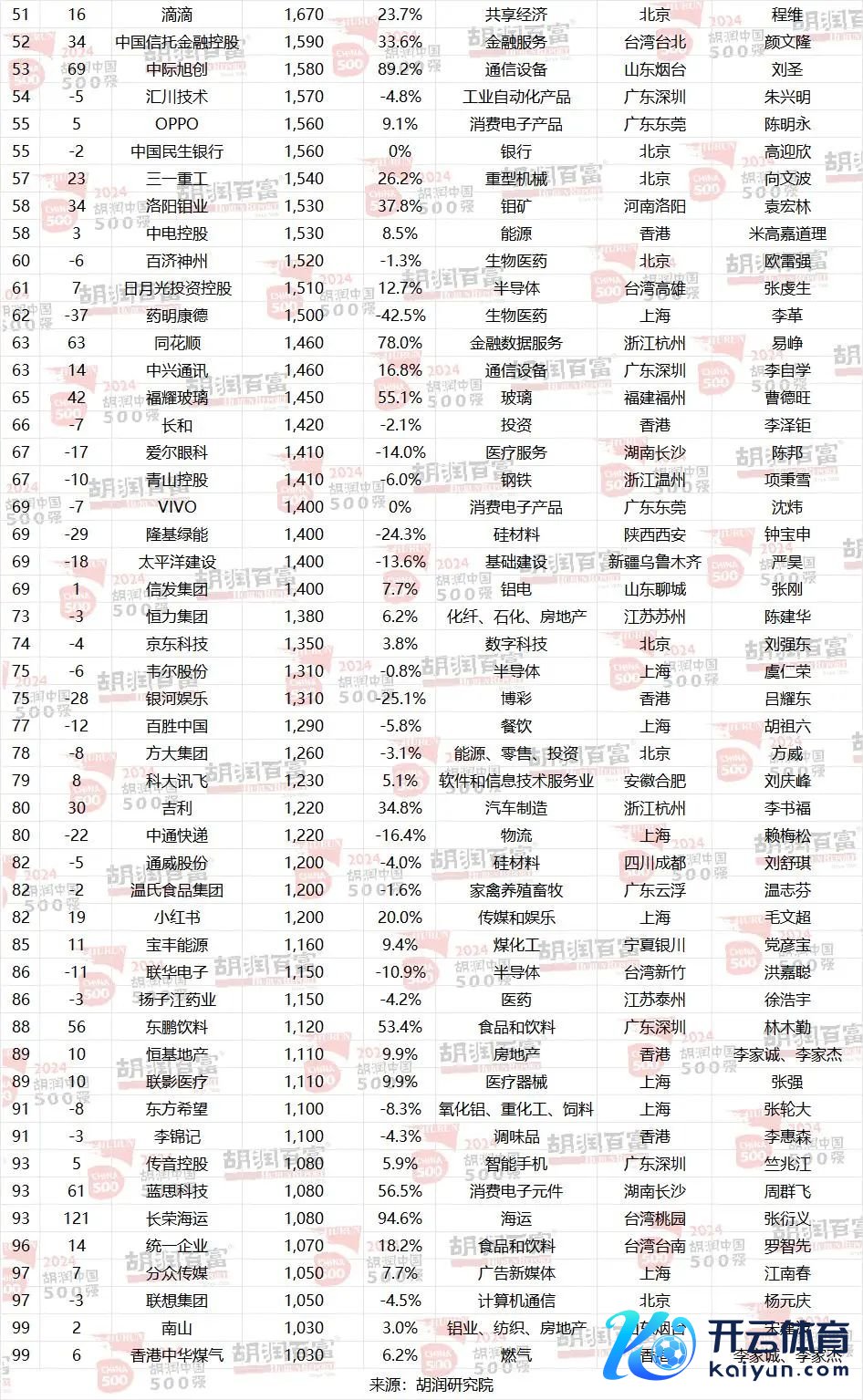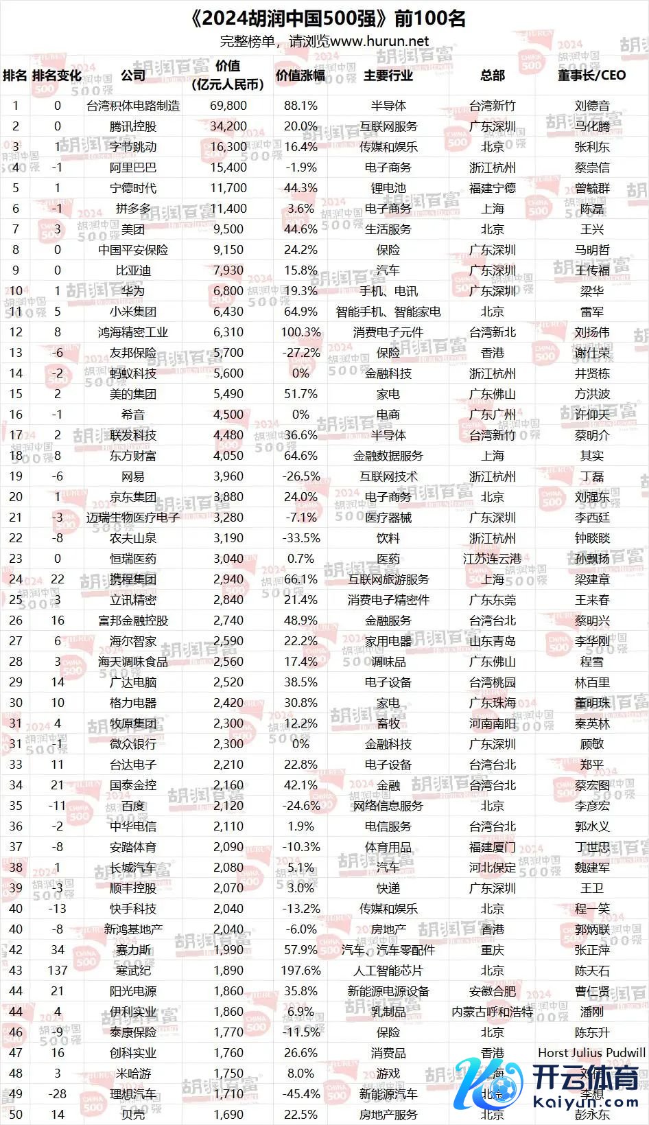 上市公司市值按照2024年11月15日的收盘价辩论,非上市公司估值参考同业业上市公司或把柄最新一轮融资情况进行估算。这是胡润扣问院连结第六次发布“胡润中国500强”。