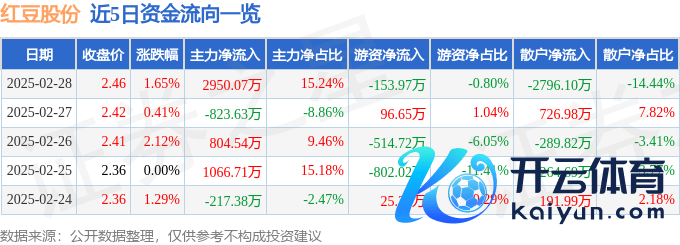 本站音讯,适度2025年2月28日收盘,红豆股份(600400)报收于2.46元,高潮1.65%,换手率3.46%,成交量79.31万手开yun体育网,成交额1.94亿元。