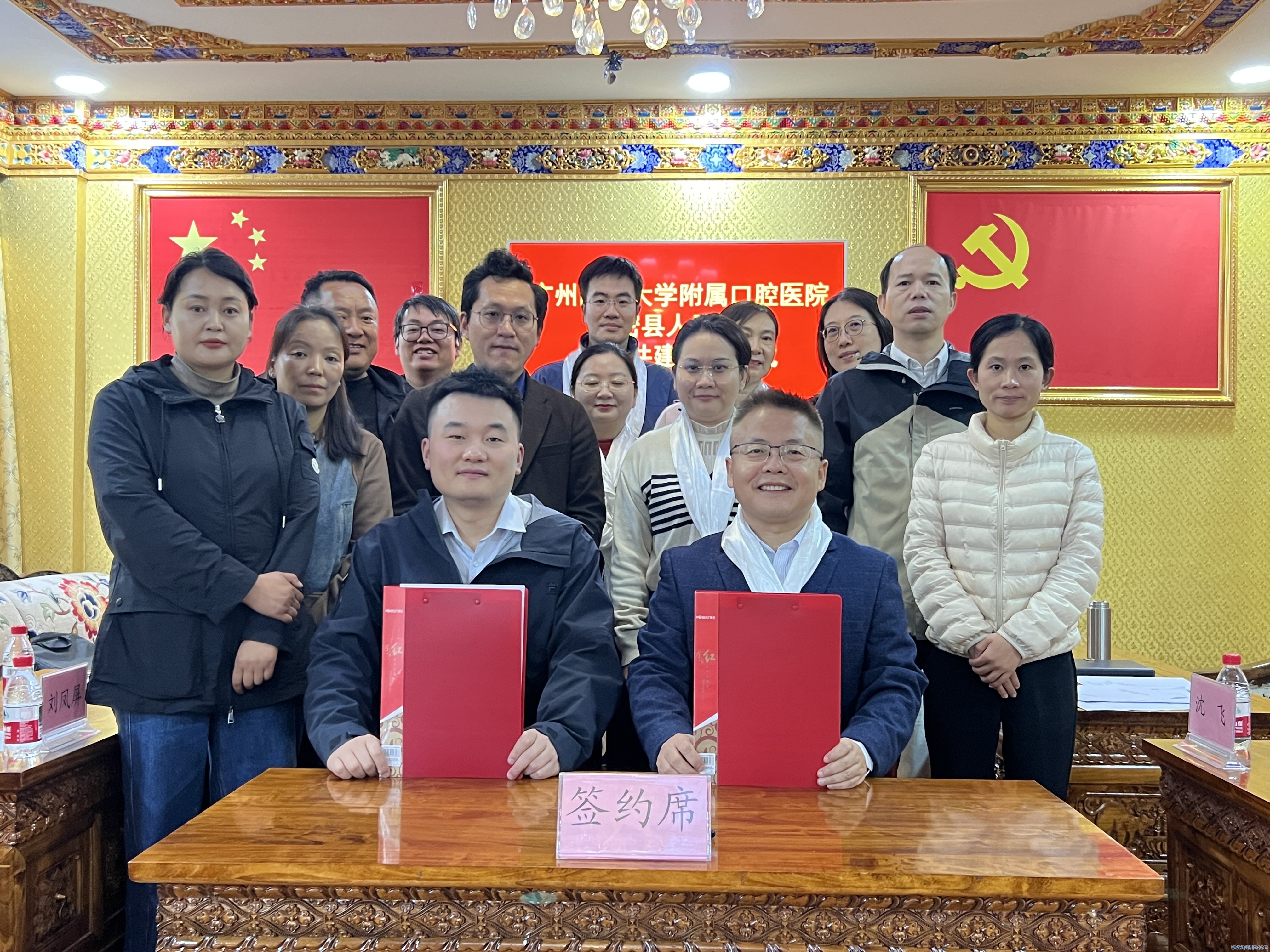 为贯彻落实新时期党的卫生与健康使命指标,深化医疗援藏帮扶见效,股东“双百筹画”落实落地,6月2日至3日,广州医科大学附庸口腔病院(以下简称“广医口腔病院”)党委通知张清彬、党委副通知刘凤屏一滑7东说念主,前去西藏林芝,差异与波密县东说念主民病院、林芝市东说念主民病院开展闲谈交流,强硬《党建共建条约书》,并向两家病院捐赠了党建、东说念主文及口腔医学类专科书本。