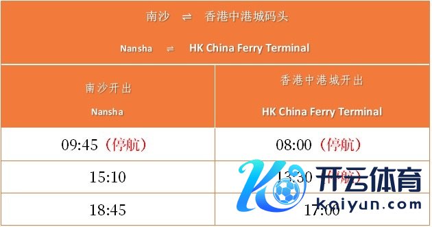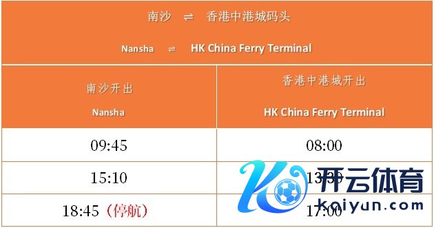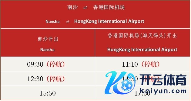 此外,2025年10月4日至5日南沙客运港往还香港中港城、香港海外机场部分航班也暂停营运,具体航班时刻如下:
