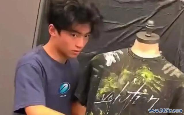 那天的灯光暗下来,舞台上他站在那儿,穿戴一件挺的涂鸦T恤