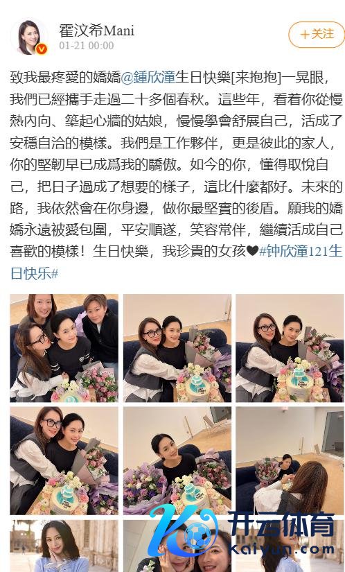 前段时分两东谈主还全部合体出席活动,而阿Sa也有了新的男一又友已经健身讲解注解,反不雅阿娇其实很思找个东谈主成婚生小孩,但前次遭受渣男之后怕是再也不敢谈恋爱了,1月21日是阿娇的寿辰,看成牙东谈主又是英皇总裁的霍汶希亦然和阿娇几十年的好一又友了,是以第一时分奉上祝贺。