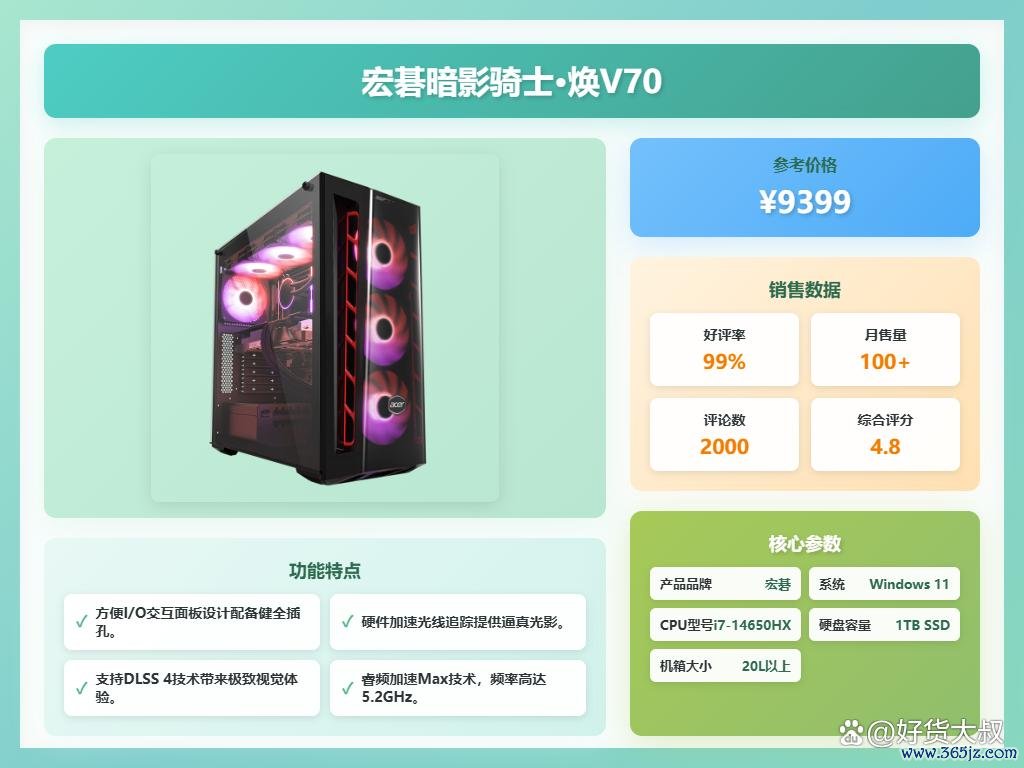 选电竞游戏主机,领先得看你的预算和主要玩的游戏类型。如果预算在5000-8000元操纵,联思GeekPro或者AOC卢918这种性价比高的机型就挺合适。它们每每配备中端的CPU和显卡,像i5-12400F/i5-14400F搭配RTX 3050/RX 7600,玩玩主流网游和一些对竖立条件不高的3A游戏完全没问题。更紧迫的是,这类主机每每膨大性也可以,可以后期证明需求升级内存或者显卡。总之,初学级玩家或者预算有限的一又友,可以要点柔软这些品牌和型号,它们能让你以合理的价钱体验到可以的游戏乐趣。天然,如若你追求更高的游戏画质和更畅通的体验,还是得往上望望。