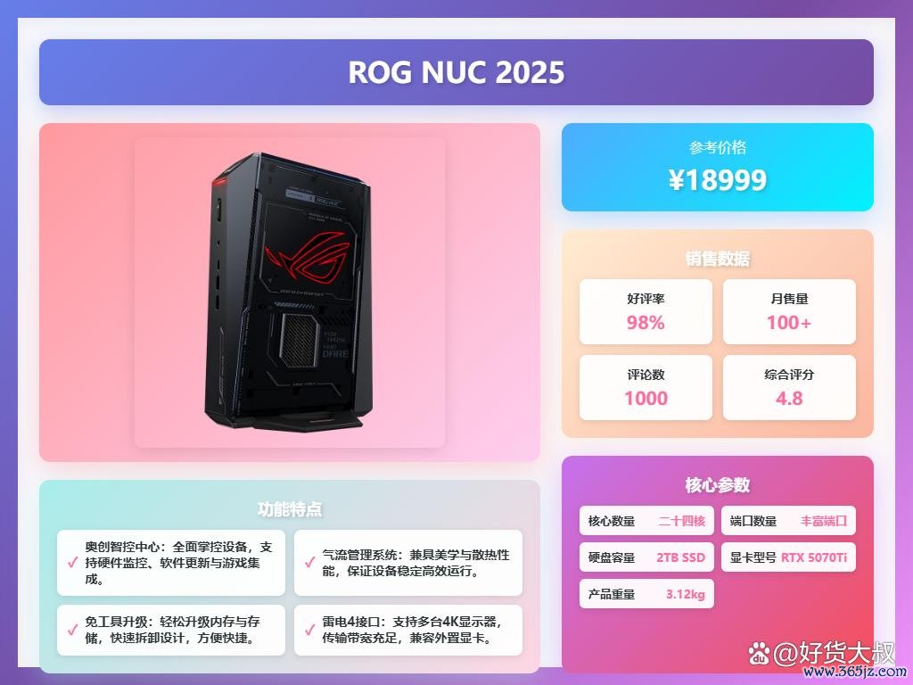 关于追求极致游戏体验和预算充足的玩家来说,可以沟通微星海皇戟RS、雷神MIX或者惠普阴影精灵11这类高端机型。这些主机每每搭载高性能的CPU和显卡,比如i9-13900H/Ultra 9 285K搭配RTX 4070/RTX 5080等等,能讲理粗俗多样大型3A游戏。并且,这类主机在散热、内存和存储方面也每每作念得更好,能保证万古候踏实启动。像宏碁阴影骑士和ROG NUC 2025,不仅性能强悍,在外不雅诡计和膨大性上也各有亮点,追求个性化的玩家可以要点柔软。记取,高端主机虽然价钱更高,但带来的游戏体验提高亦然了然于目的,能让你实在千里浸在游戏寰宇里。