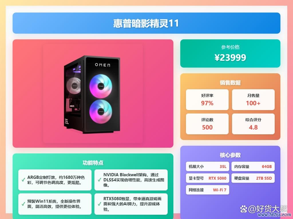 惠普阴影精灵11这台机子,领先引诱我的等于它搭载的GeForce RTX 5080,这但是个硬家伙!AI算力确乎强悍,玩游戏画面那叫一个传神,并且用NVIDIA DLSS 4时间,速率更快了,体验格外棒。