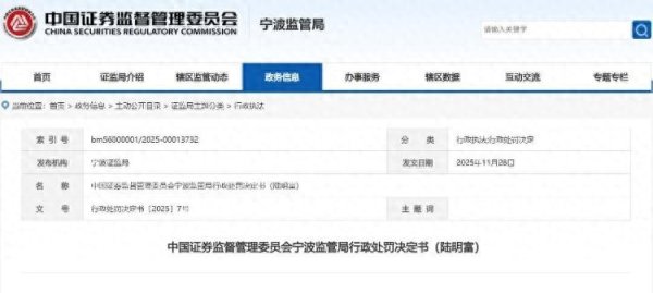 开云体育中国证券监督责罚委员会宁波监管局发布行政处罚决定书-开云官网登录入口 开云app官网入口