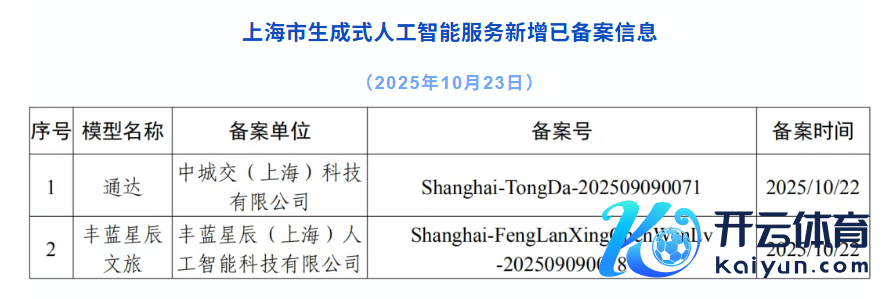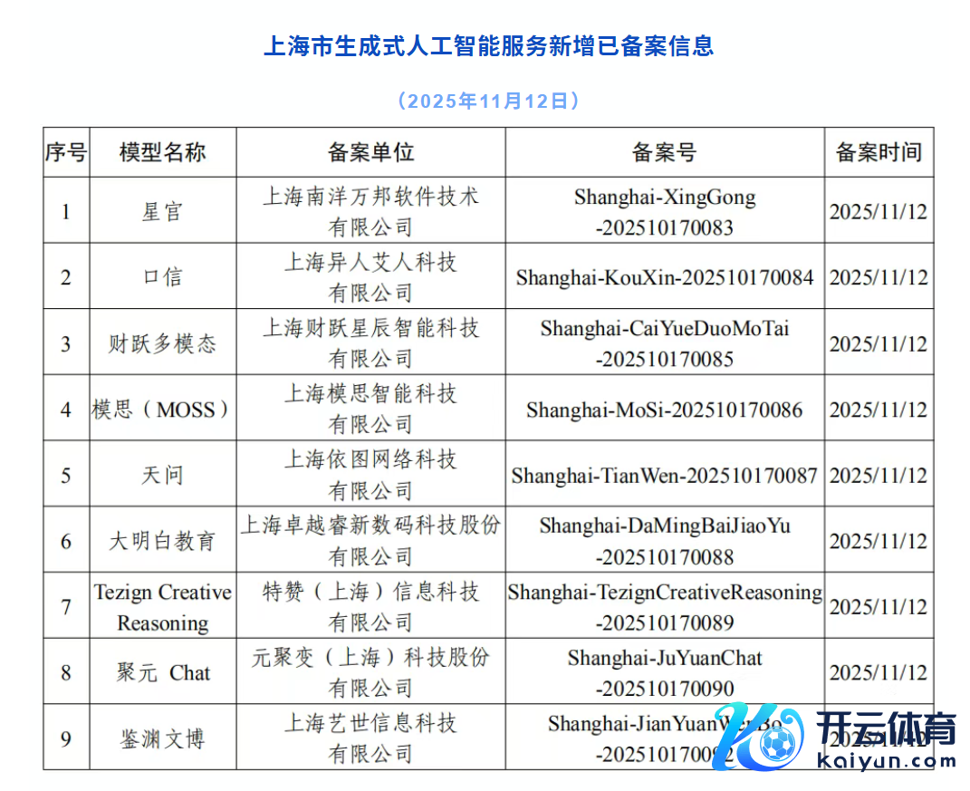 上海新增2款已完成备案的生成式东谈主工智能作事开云体育上海新增2款已完成备案的生成式东谈主工智能作事
