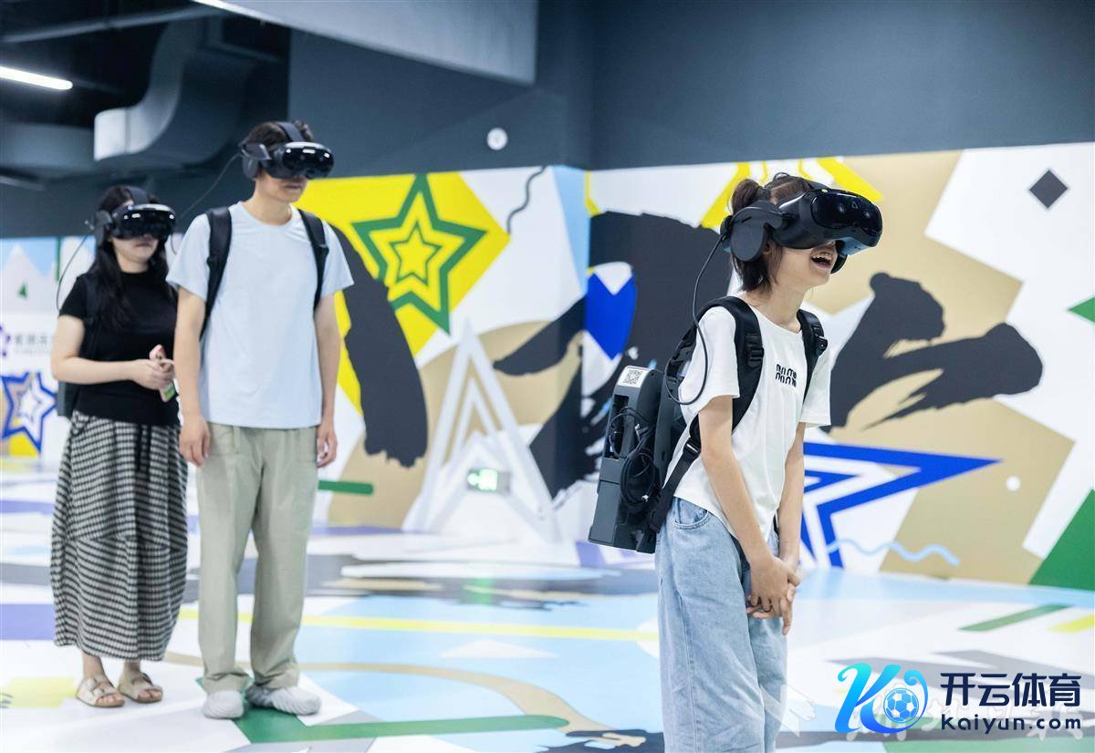 武昌滨江天街紫荆改日元天地体验馆东谈主气王人备,搭客率领VR开垦,须臾“穿越”至武当仙山。(湖北日报全媒记者 薛婷 摄)