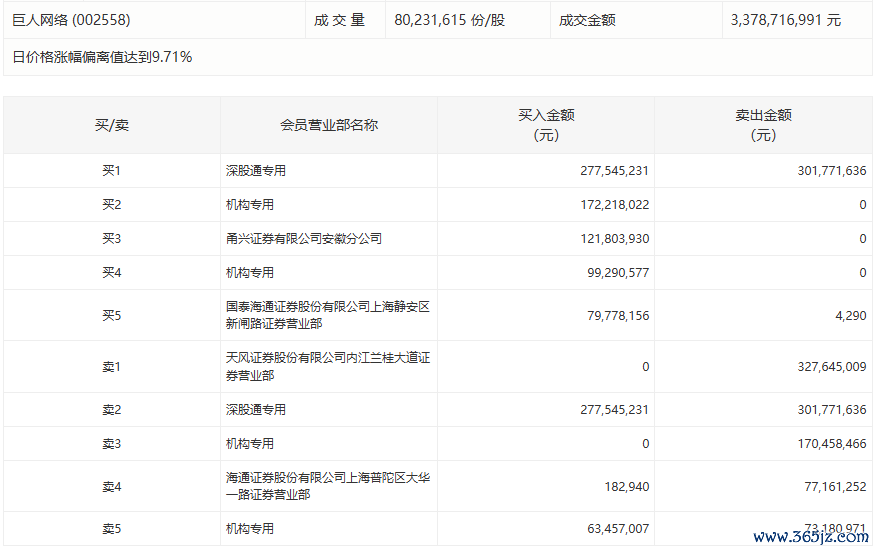 0 09-11 17:04巨东说念主网络本日涨10.01%,2家机构专用席位净买入2.72亿元