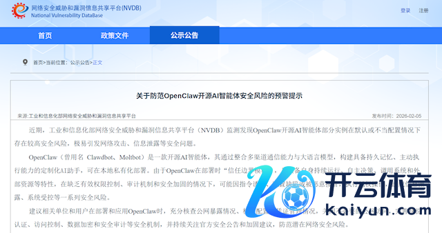 近日,工业和信息化部网罗安全威逼和纰缪信息分享平台(NVDB)就监测发现了OpenClaw开源AI智能体部分实例在默许或不妥配置情况下存在较高安全风险,极易激发网罗膺惩、信息透露等安全问题。