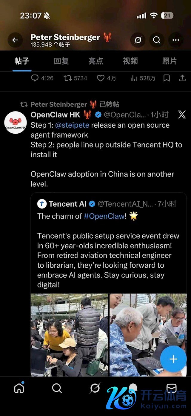 连OpenClaw创举东说念主Peter齐躬行转发惊叹:“在中国,龙虾的接受度如故到了全新层级。”
