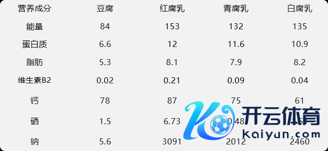 固然腐乳的养分看起来很好,但也存在一个不行冷落的问题,那等于盐含量实在不低。阐发《中国食物身分表》中的数据,红腐乳、青腐乳、白腐乳的钠含量永诀高达 3091mg/100g、2012mg/100g、2460mg/100g,是豆腐钠含量的 350~550 倍。