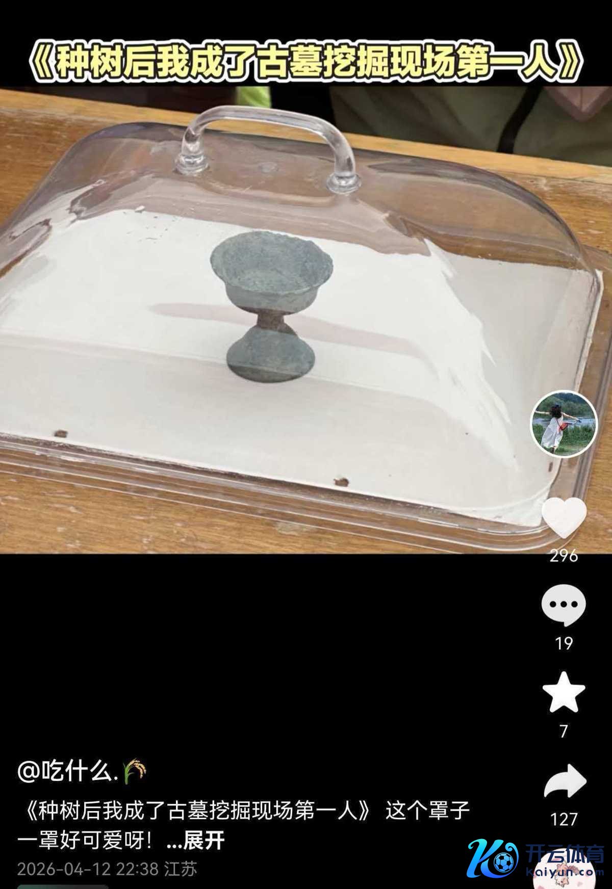 据网友@吃什么于4月12日发布题为《种树后我成了古墓挖掘现场第一东谈主》的视频称,她干活时挖到了一个高脚杯,然后用菜罩将其盖起来了。