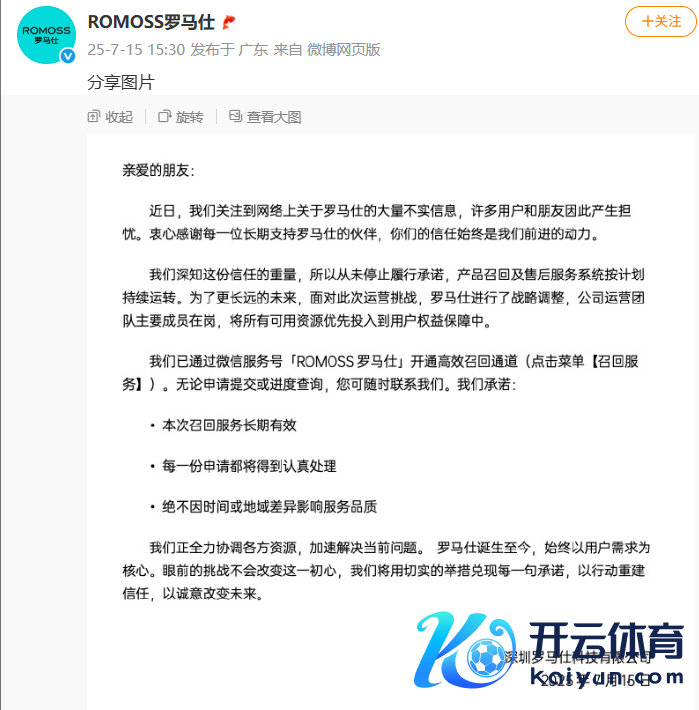 罗马仕最新声明:从未罢手实施甘愿 产物调回及售后奇迹系统按打算捏续运行罗马仕最新声明:从未罢手实施甘愿 产物调回及售后奇迹系统按打算捏续运行