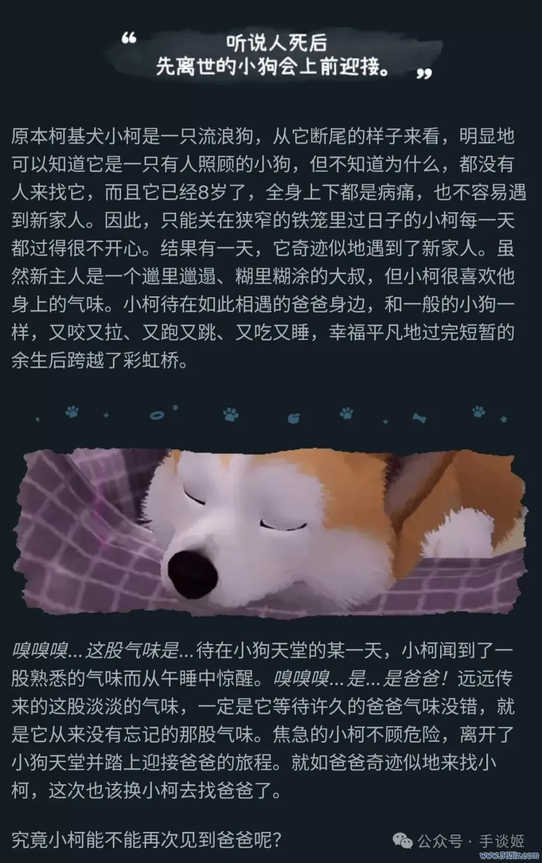 诚然主角是小柯基,但思必家有小东西的姬友们齐能共情这种嗅觉——尤其是和姬相通,躬行送走它们的东谈主。